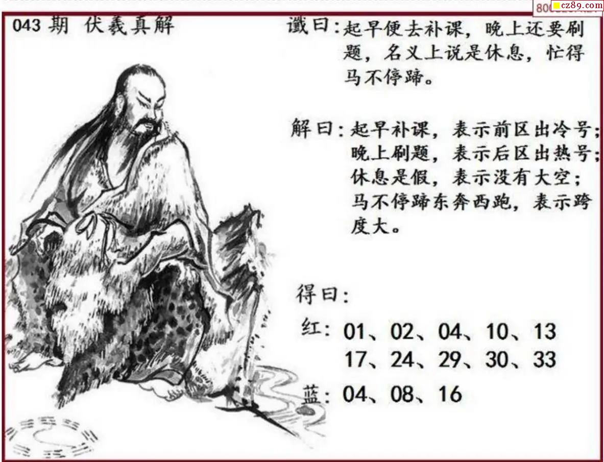 双色球2026年图迷043期 伏羲真解图